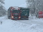 LKWs wurden abgestellt und beim Anlegen der Schneeketten unterstützt.