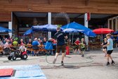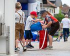 Großen Spaß hatten die Kinder mit der Hüpfburg, die von der Firma Knoblinger bereit gestellt wurde, sowie den zwei Kübelspritzen und Trettraktoren von der Firma Flixeder.